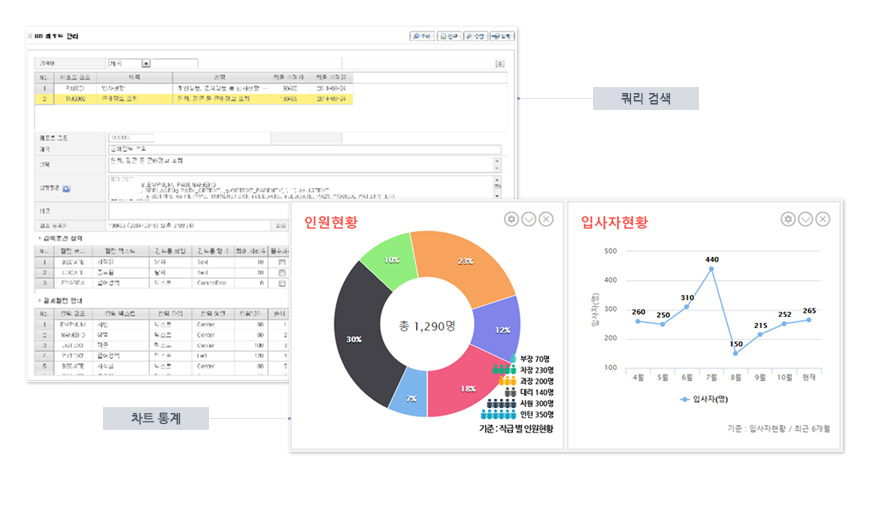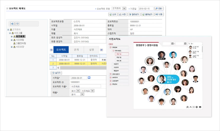 | Mobile | HR 주요 기능을 Mobile Web 환경에서 구현하여 조직/직원검색, 복무 신청/승인, 통계정보, 게시판 등의 업무를 처리할 수 있으며, 고객의 특정 요구에 따라 기능을 Add-on할 수 있습니다 |