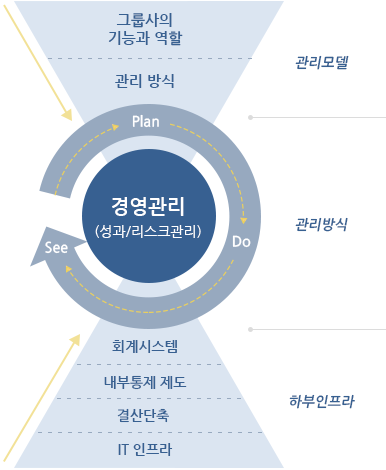 당사는 SAP BPC 솔루션을 활용하여 그룹 관리의 효율성/통일성을 높이는 한편 투명한 경영관리 체제 구축을 위한 통합 그룹 경영관리 컨텐츠를 개발 제공하고 있습니다.