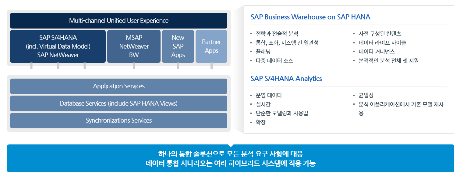 SAP S/4HANA Analytics + SAP Business Warehouse 종합적인 분석 환경 제공 – 운영 및 시계열, 계획 데이터 정보 제공