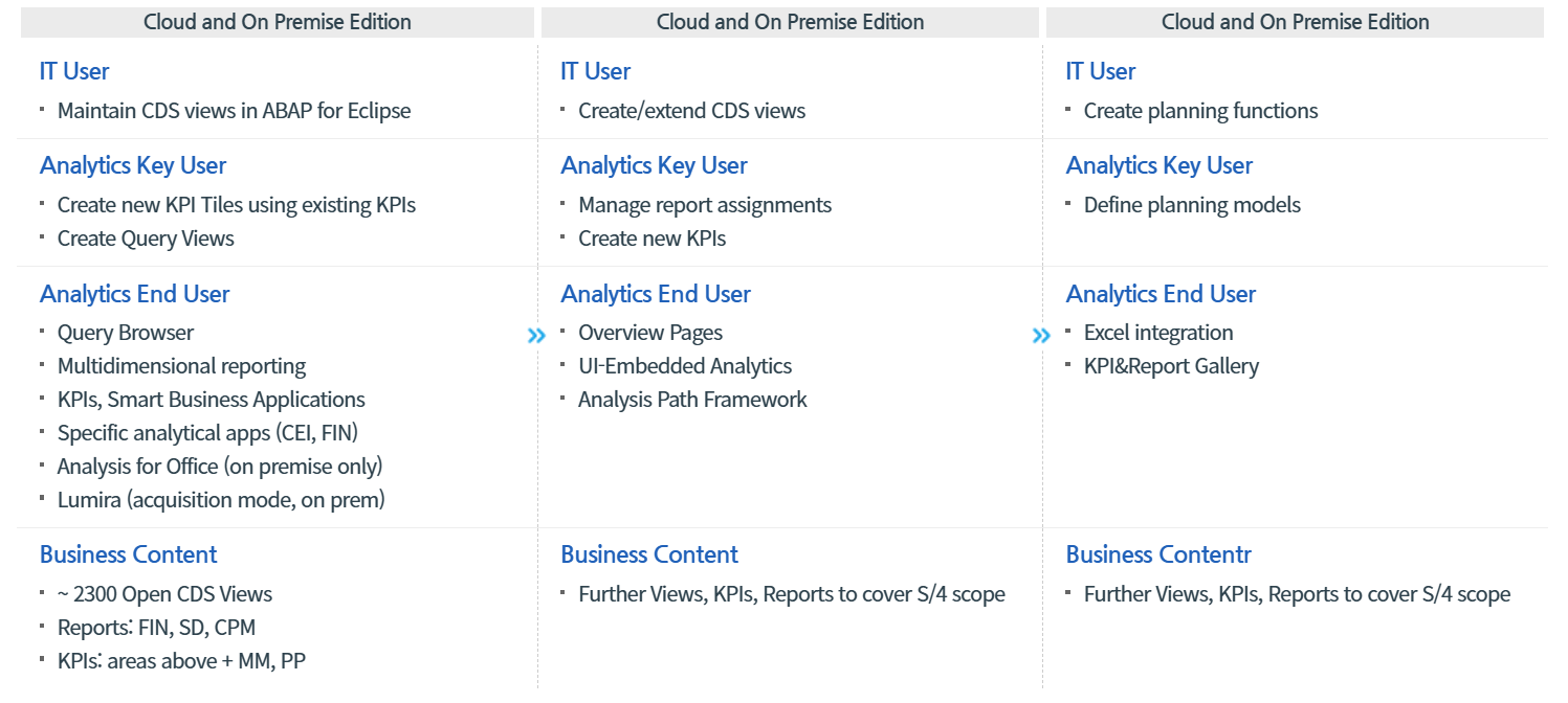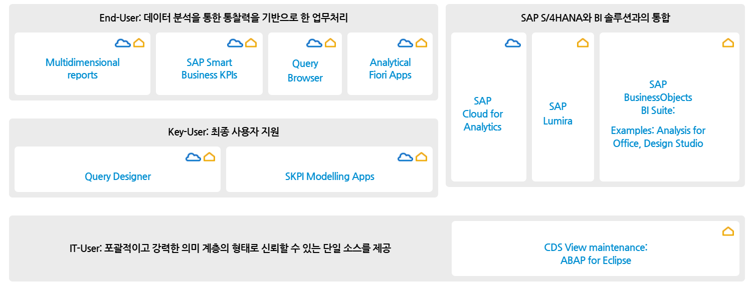 SAP S/4HANA embedded analytics+ BI TOOL 사용자 유형에 따른 역할 및 분석 방안